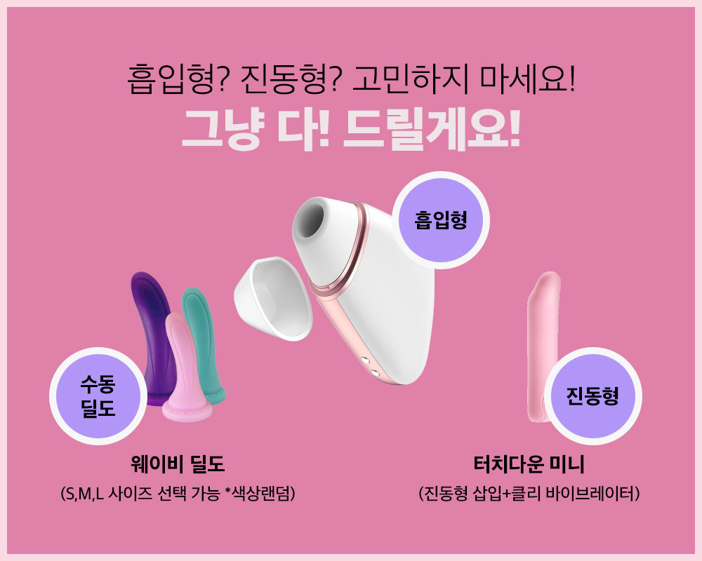 한 제품 가격으로 흡입형 + 진동형 + 삽입형을 모두 경험할 수 있는 구성입니다.
